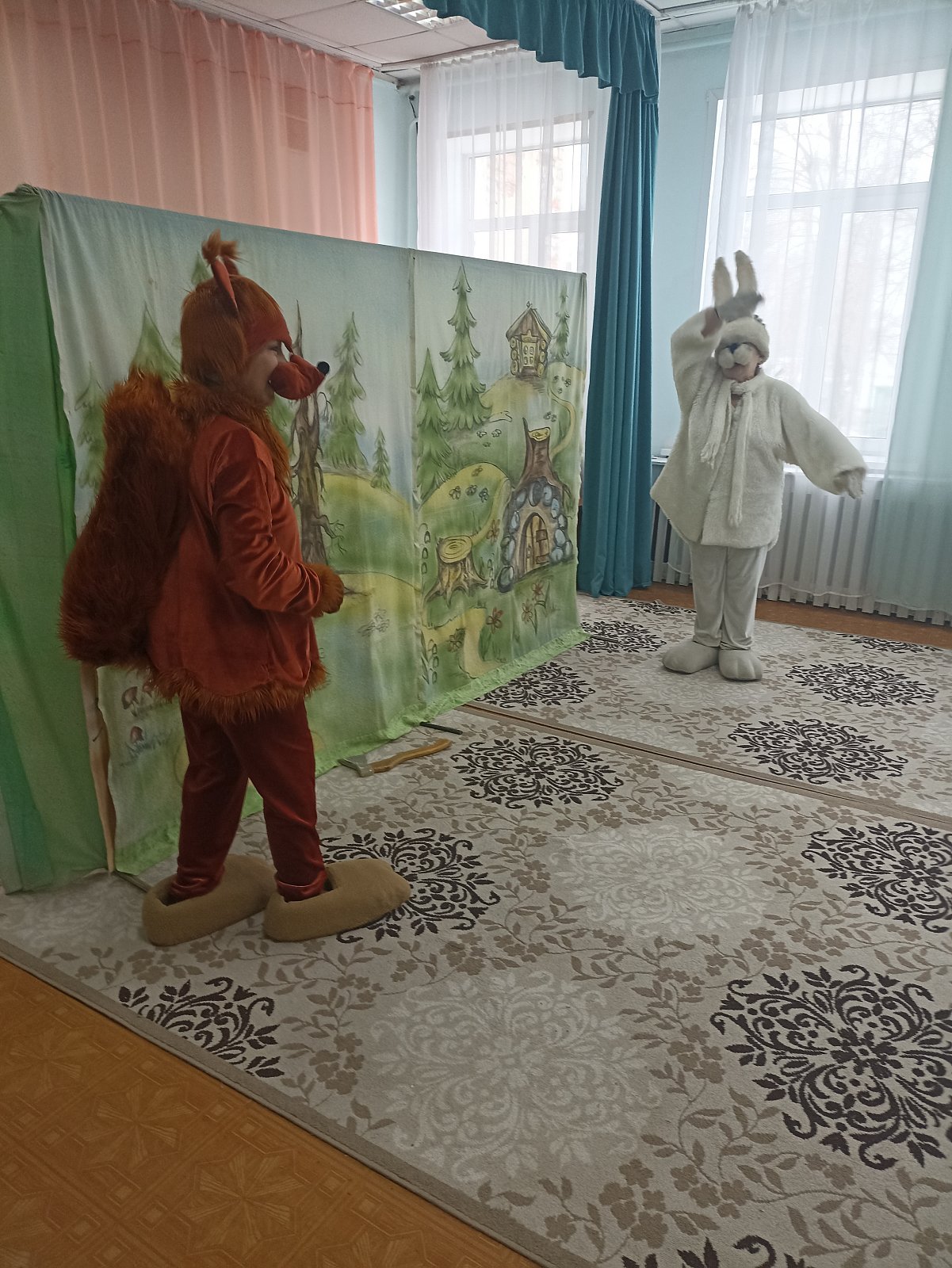 В спектаклях участвуют как маленькие персонажи (куклы над ширмой), так и персонажи во весь рост. Героями сказок становятся лесные обитатели.